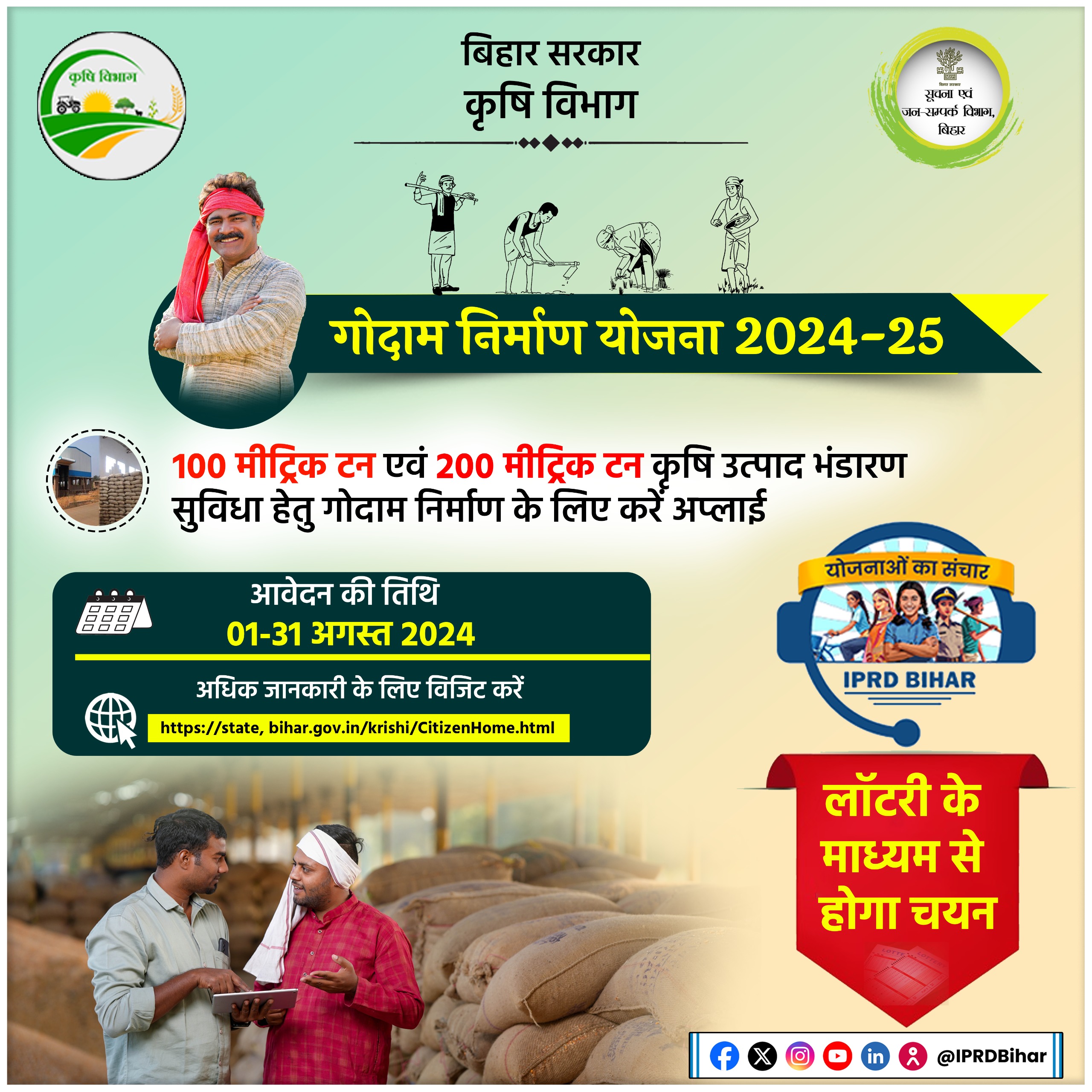 - For the year 2024-25, the application process for the Bihar Godam Nirman Yojana has commenced.