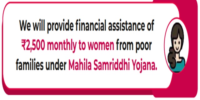 - Monthly Financial assistance of Rs 2,500/- to all women.