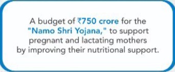- એક યોજના જે ખાસ કરીને સગર્ભા સ્ત્રીઓ અને સ્તનપાન કરાવતી માતાઓ માટે શરૂ કરવામાં આવી રહી છે તે "નમો શ્રી યોજના" છે.