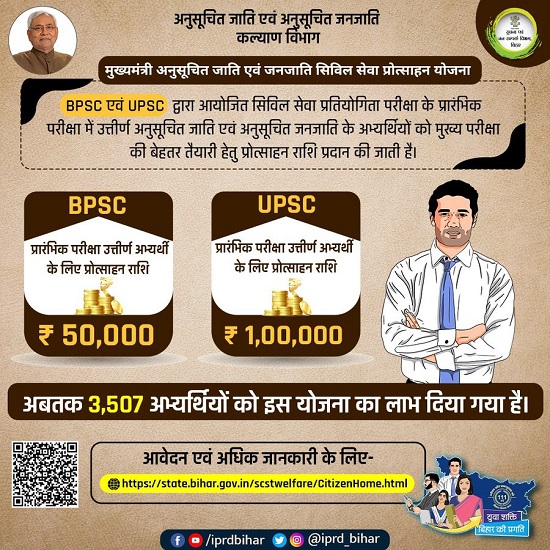 | योजना का नाम | बिहार मुख्यमंत्री अनुसूचित जाती एवं जनजाति सिविल सेवा प्रोत्साहन योजना। |