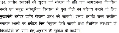 - सरकार द्वारा संरक्षित स्थलों का भ्रमण कराने के लिए धरोहर मित्र की नियुक्ति की जाएगी।