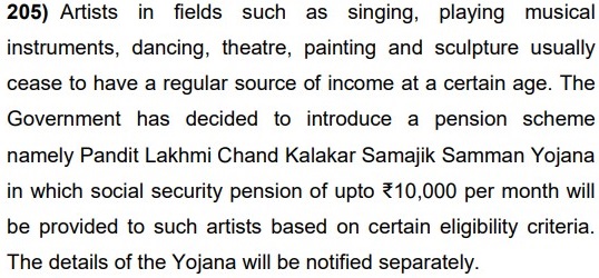 - लाभार्थी कलाकार को 10,000/-रुपए प्रति माह पेंशन देय होगी।
