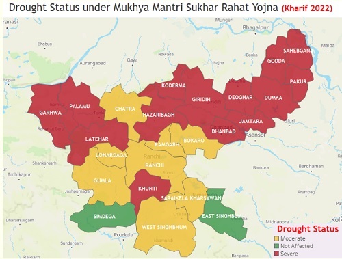 - इन 22 जिलों के 226 प्रखण्डों के सूखे से आहात किसानो की सहायता करने के लिए ही झारखण्ड सरकार द्वारा मुख्यमंत्री सुखाड़ राहत योजना की शुरुवात की गयी।