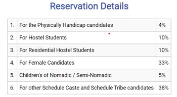 - 33% Seat for Women Students and 5% Seat for Physically Handicapped Students are reserved.