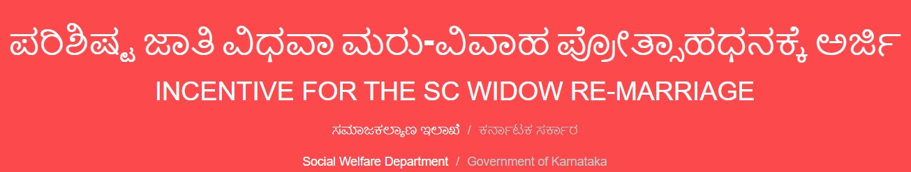 - Online Application Form of SC Widow Re-marriage Assistance Scheme of Karnataka Government is available on Social Welfare Department Website.