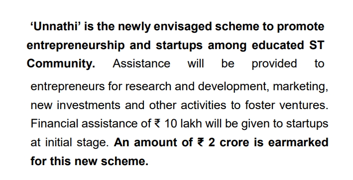 - To address this, the government announced this 'Unnathi Scheme' specifically for entrepreneurs from Scheduled Tribe categories.