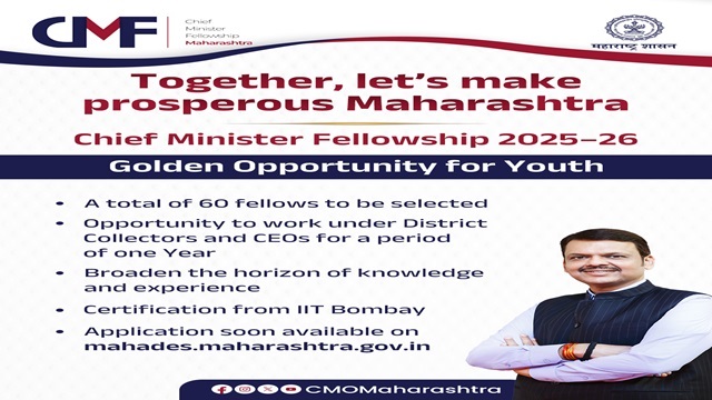 - Maharashtra Government released the 2025-2026 application schedule of Chief Minister Fellowship Program. The following important dates are :-