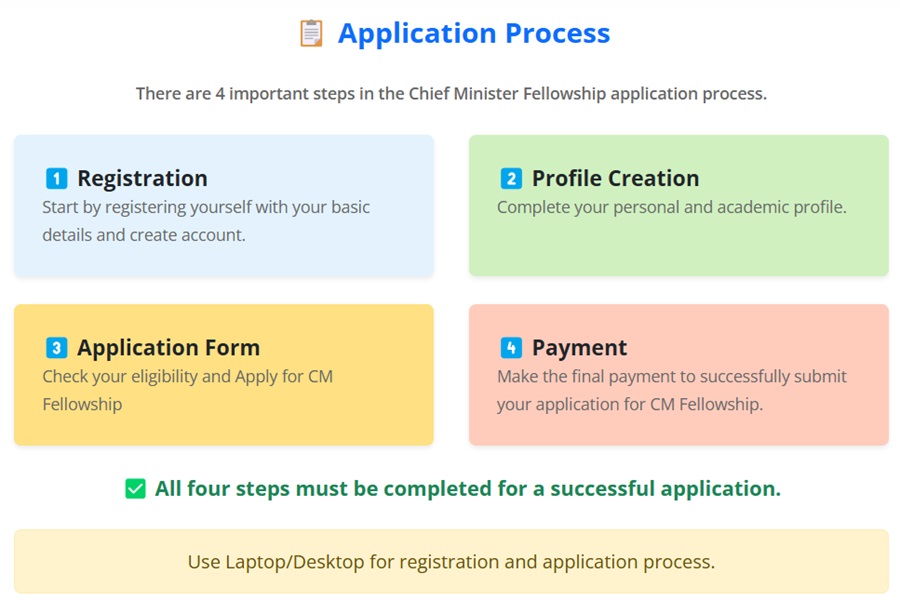 - Eligible Applicants can apply for the Chief Minister Fellowship Program by filling an Online Application Form.