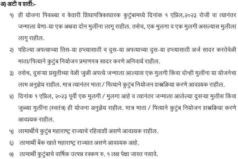 - The following eligibility conditions are set by Maharashtra Government in order to provide the financial assistance to eligible beneficiaries under Lek Ladki Scheme :-