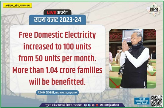 - The Free Electricity Scheme started by Ashok Gehlot government has been discontinued by the current BJP Government.