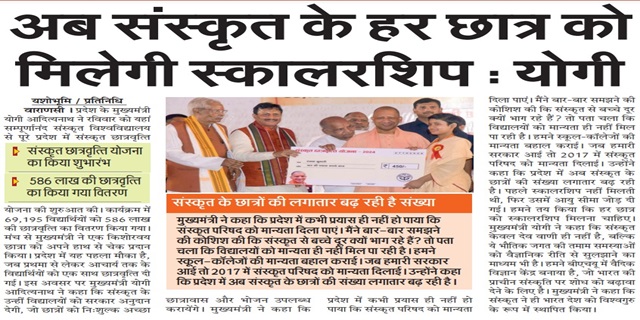 - Each Sanskrit students will receive a scholarship worth Rs 300/-.