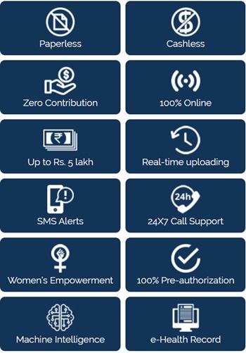 - Under this scheme basic health cover for secondary and tertiary care upto Rs. 5 Lakh per year per family will be provided to registered families.